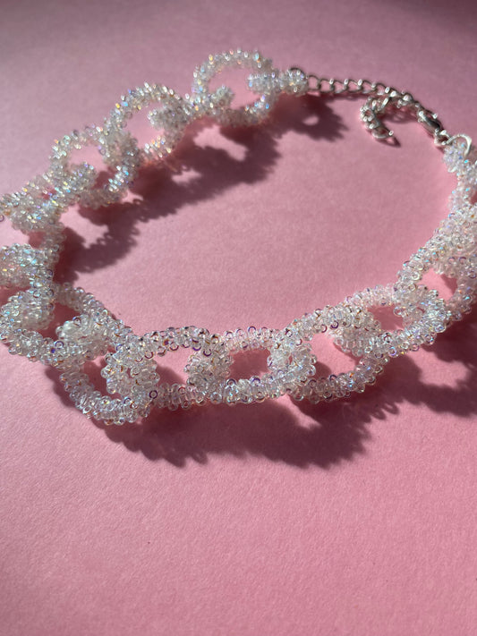 Beaded chain choker in white